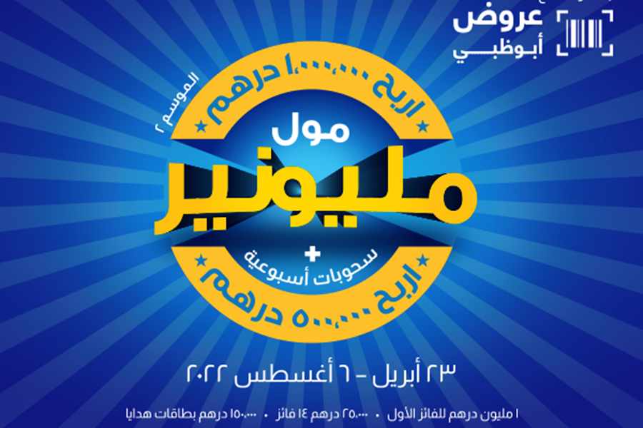 حملة "مليونير المول موسم 2" بالتعاون مع دائرة السياحة والثقافة في أبوظبي، حيث ستسلط الضوء على جزء من مهرجان أبوظبي للتسوق، ستقدم مراكزنا التسعة المشاركة في الحملة مجموعة من الجوائز والعروض الترفيهية والعديد من المفاجآت الأخرى وذلك من تاريخ 23 أبريل 2022 إلى 6 أغسطس 2022.